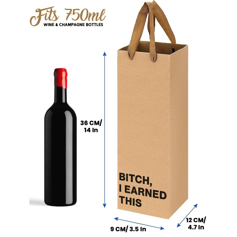 - 𝐇𝐔𝐌𝐎𝐑𝐎𝐔𝐒 & 𝐒𝐀𝐒𝐒𝐘 𝐃𝐄𝐒𝐈𝐆𝐍: This wine gift bag features the bold, snarky quote “Bitch I Earned This” in eye-catching print. This funny wine bag adds a dry-humor twist to your gift, sure to spark laughter and make your present memorable.