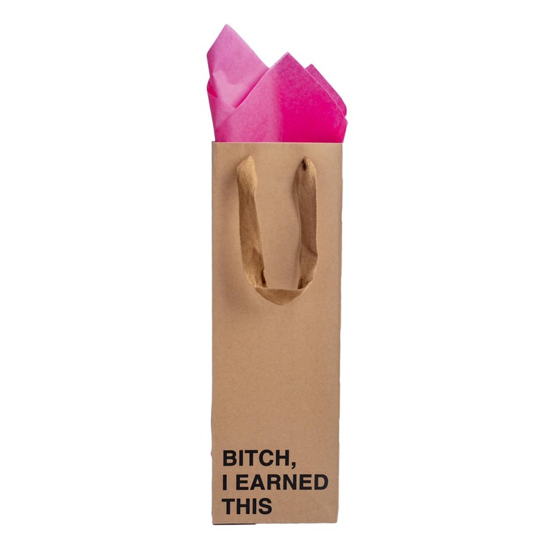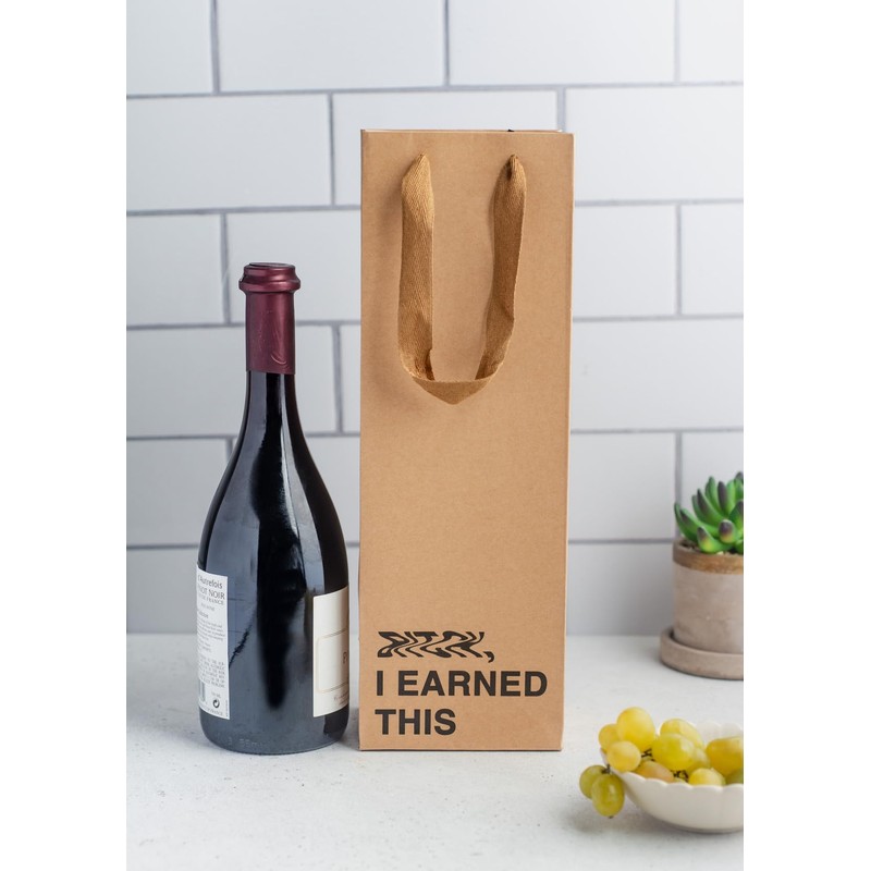 MilkToast Brands Funny Wine Gift Bag with Bitch I Earned This Saying – Reusable Kraft Paper Wrap Bag (4.7″ x 3.5″ x 14″) with Sturdy Handles – Humorous Gag Gift for Wine Lovers, Parties, Secret Santa