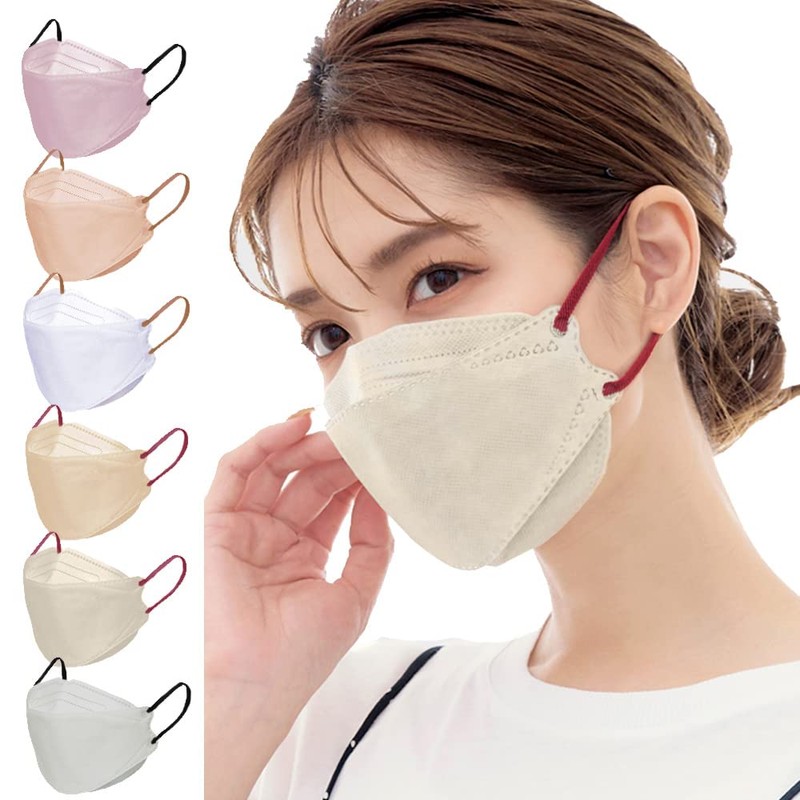 - ■カットフィルターを採用した不織布(立体)マスク。不織布と不織布の間にメルトブローンを挟んで、BFE:微粒子ろ過効率、99.9%カット。立体構造により、顔にフィットかつ小顔のフェイスラインを実現。様々なカラー展開で、マスクをファッショナブルに着用できます。