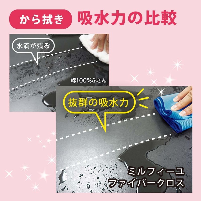 - Leaves no residue after wiping. Even when wet. This microfiber cloth absorbs water and oil together, so you don't need to wipe it twice. [Milfille Fiber Cloth]