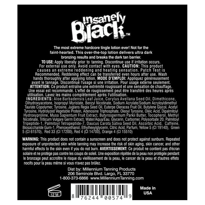 Millennium Tanning Insanely Black 60X Mega Tingle: Ultra tingle and sun-warmth. Bask in the glory that is your bronzed deep tan, with a sun-kissed feel!