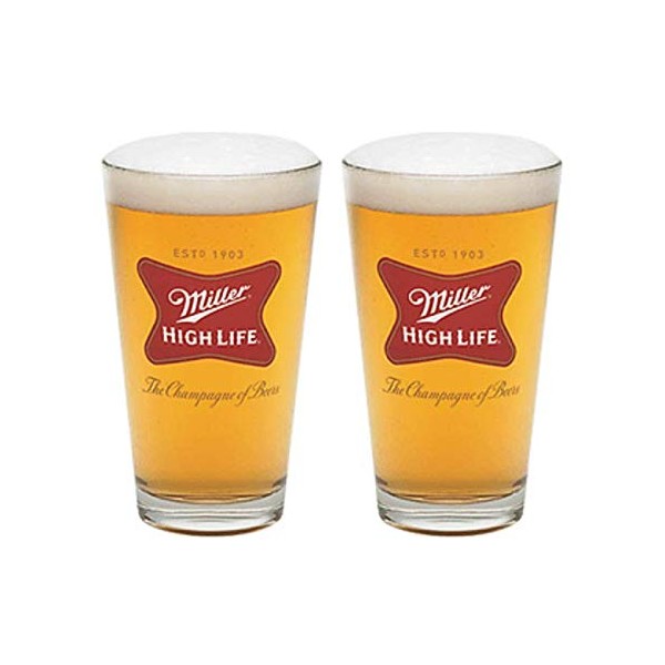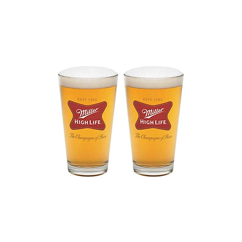 Miller High Life Beer Pint Glasses Set of 2 L