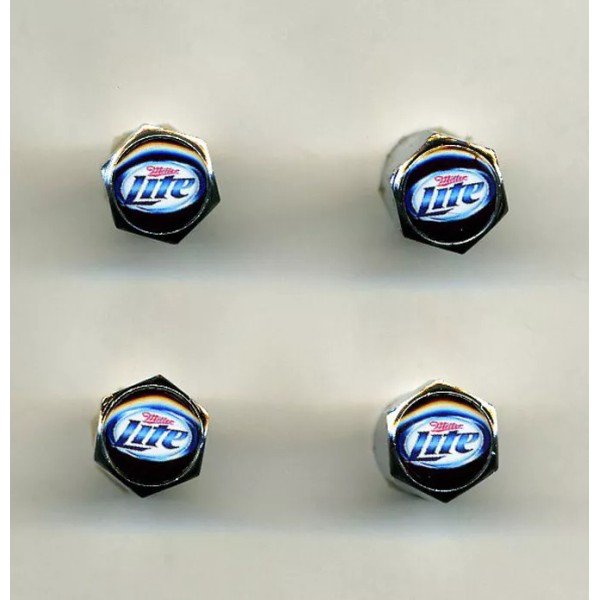 Miller Lite 4 Chrome Plated Brass Tire Valve Caps Car Bike Golf Carts Miller