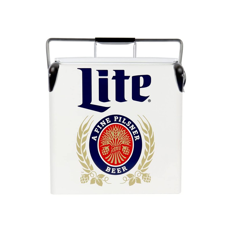 - Perfect Gift for Miller Lite Fans: Unique retro-style cooler with sleek white exterior, polished chrome accents, and vintage Miller Lite artwork is the ideal gift for collectors and day-trippers