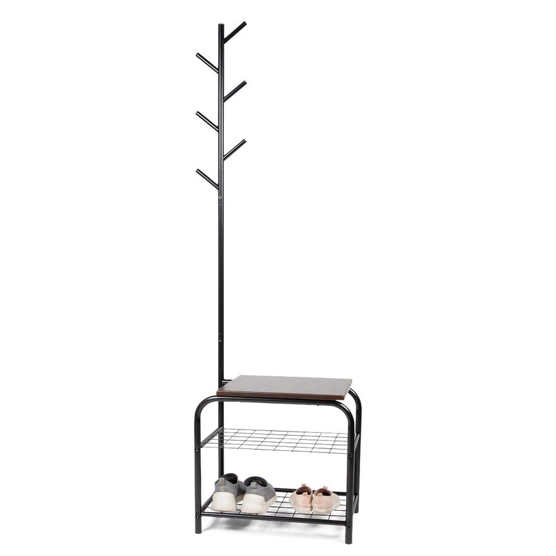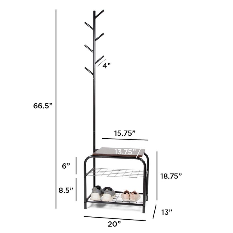 - All-in-1 coat rack: a comfortable seat with 6 hooks and 2 shelves to provide ample storage for your jackets, scarves, shoes and mudroom gear.