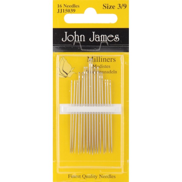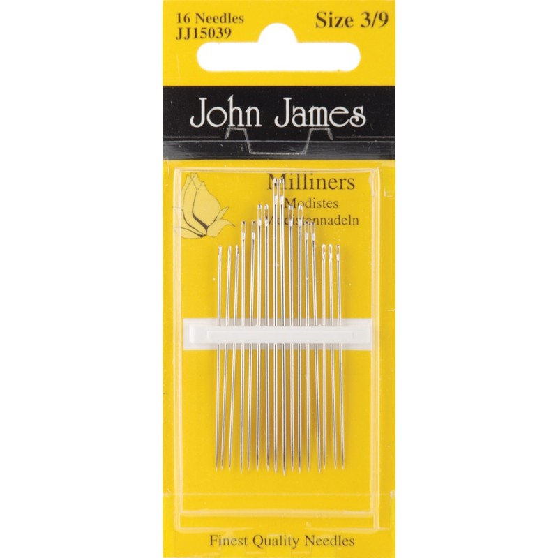 John James Milliners / Straw Needles Assorted Sizes 3/9 16ct.16/card Made in England. Finest Quality English Needles. The perfect start to any project. Made in United Kingdom.