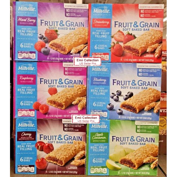 Millville Fruit & Grain Soft Baked Cereal 6 Flavors Bars, 7.8oz 222g (6 Boxes)