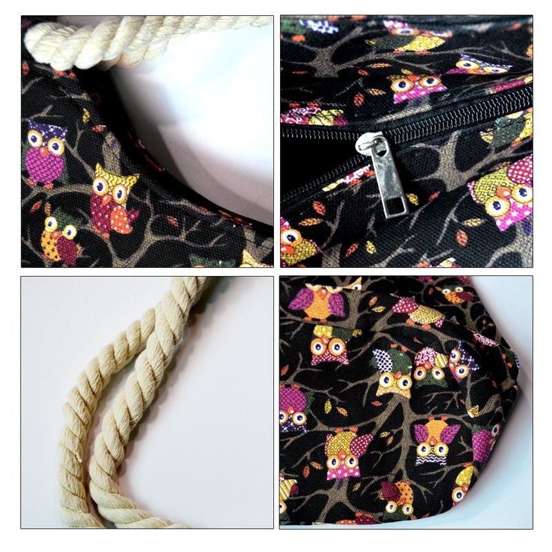 Millya Women Canvas Travel Tote Bag Owl Pattern Oversized Shoulder Bag Holiday Beach Shopping Bag,Black