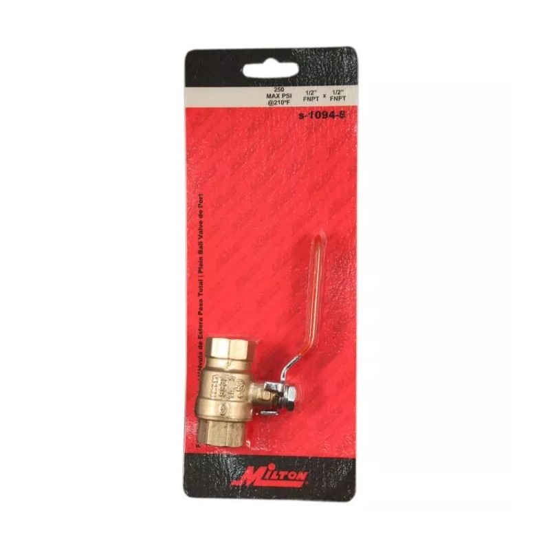 Milton® (S-1094-8) 1/2” FNPT Full Port Heavy-Duty Brass Ball Valve