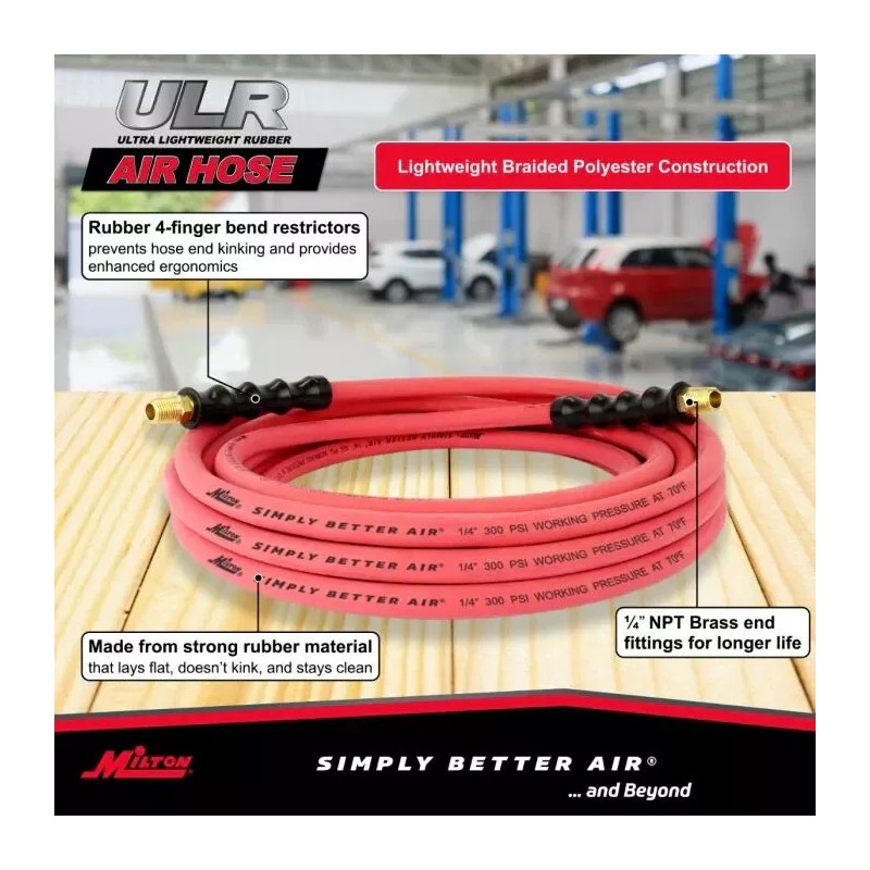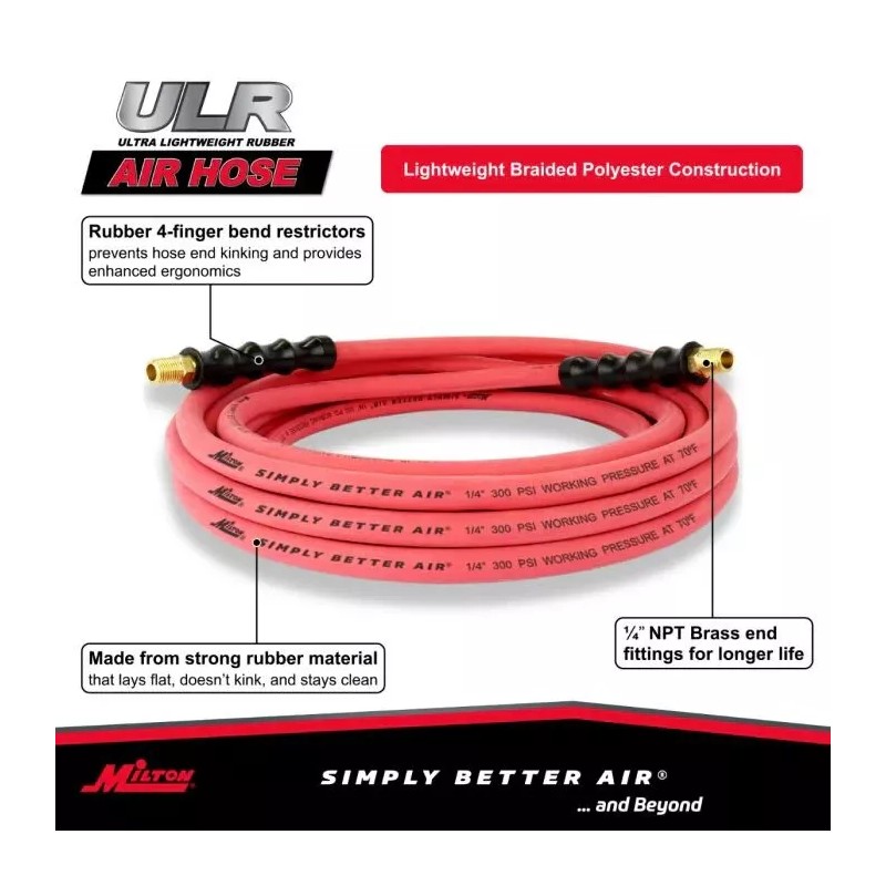 Milton® 1/4" Ultra Lightweight Rubber Hose, 25' Air Hose w/ 1/4" NPT