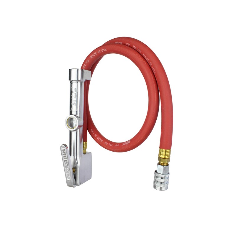 Milton 502 Heavy-Duty Analog Tire Inflator with Pressure Gauge, 3' Hose Kwik Grip Safety Inflator Gage, Made in USA (OSHA Compliant) 10-60 PSI