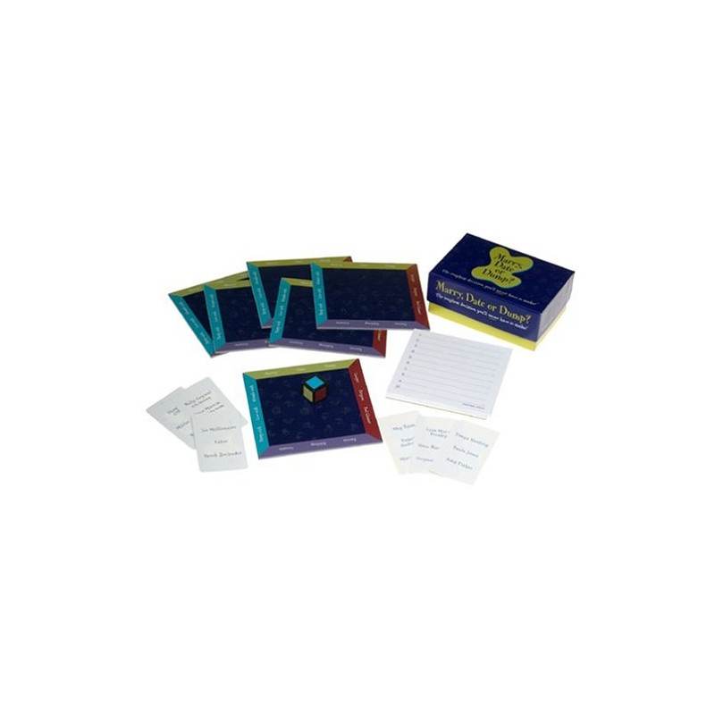 Decisions, decisions. Should you marry a movie star' Or date a rock star' Even if you thought you'd never get to make such a decision, you will when you play this game. Decide whether you'll marry, date or dump the movie stars, athletes and rock stars. Your opponents have to guess what your choices will be. This fun game is guaranteed to start interesting conversations between you and your friends -- and you'll learn more about each other than you ever thought you would! It's perfect for a ladies' game night. For 2 to 6 adult players.