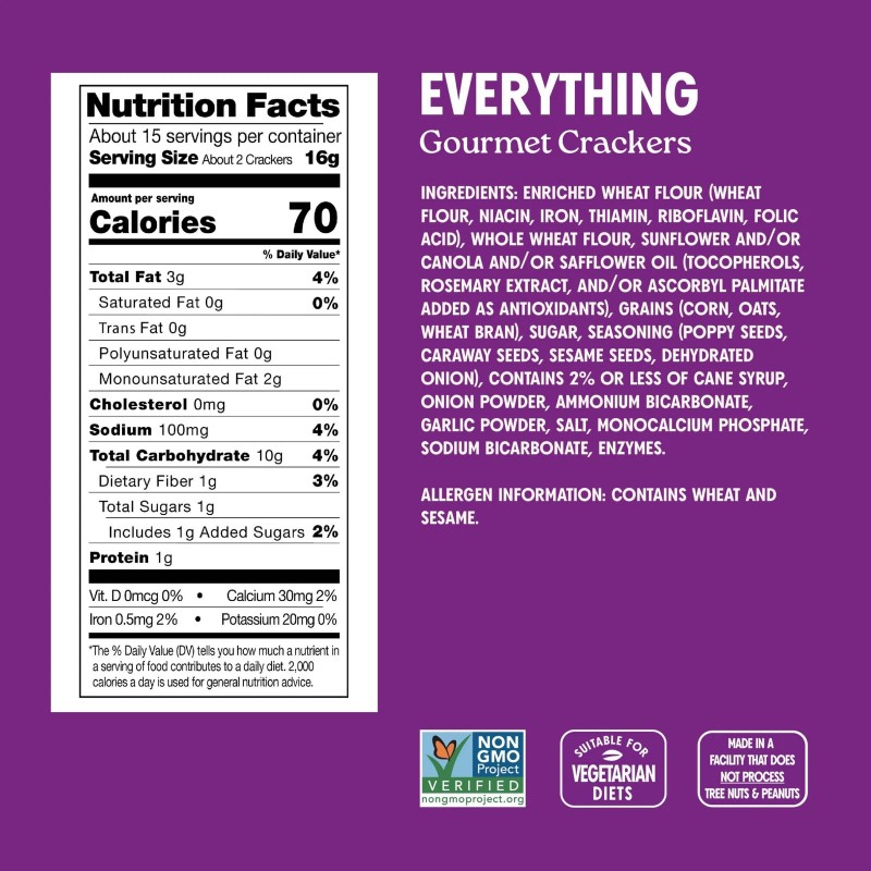 - DELICIOUS YOU CAN FEEL GOOD ABOUT - Baked to perfection, these are your go-to crackers for all occasions. The delicious combination of grains, seeds, and savory seasonings are the perfect pairing for your favorite cheeses, meats, and spreads.