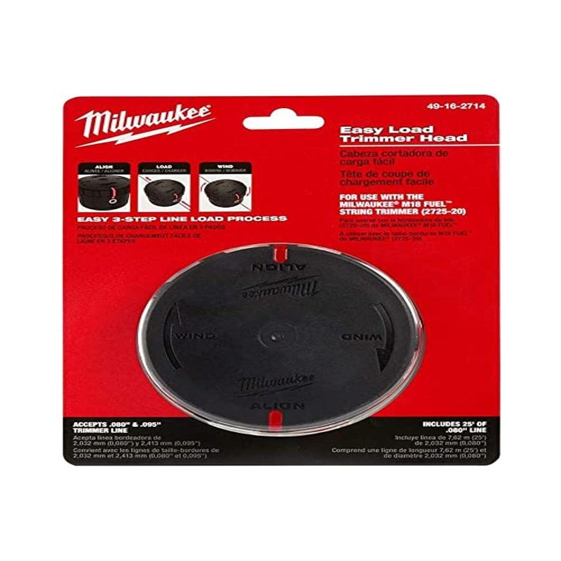 - El cabezal de corte Milwaukee de fácil carga está diseñado para satisfacer las necesidades profesionales de mantenimiento del paisaje. Ofrece una experiencia de carga de línea simple y se puede cargar con 25 pies de 0. 080 pulgadas. O 20 pies de 0. 095 pulgadas. Línea de corte en menos de 30 segundos. Limpia hasta 40 cm. En un solo pase. Utiliza un mecanismo de alimentación de golpes y tiene una resistencia extrema al desgaste que proporciona una vida útil más larga.