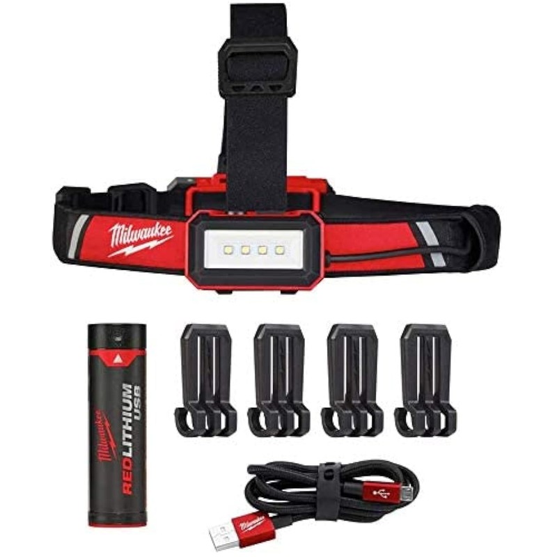 - Includes: (1) USB rechargeable low-profile headlamp (2115-21), (1) REDLITHIUM USB 3.0AH battery (48-11-2131), (1) 2 ft. heavy duty USB Cord (4) universal hard hat clips.