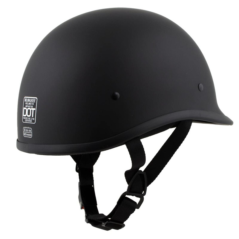 Milwaukee Helmets MPH9750DOT Dot Approved Matte Black 'Polo' Half Motorcycle Face Motorcycle Half Motorcycle Helmet for Men and Women Biker - Medium