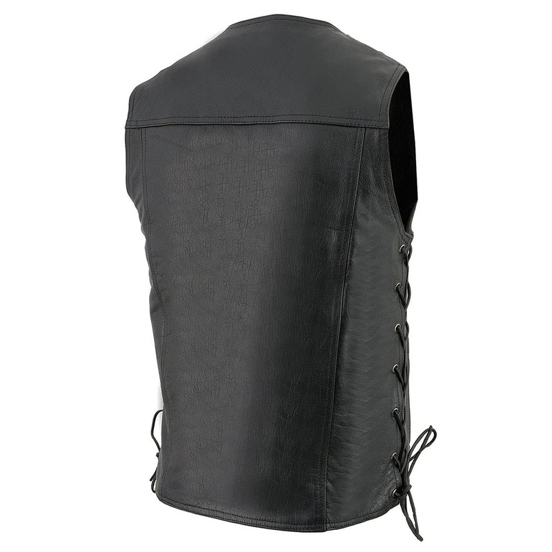 Milwaukee Leather LKM1360 Men's Classic Black Leather V-Neck Motorcycle Rider Vest w/Adjustable Side Laces - 4X-Large