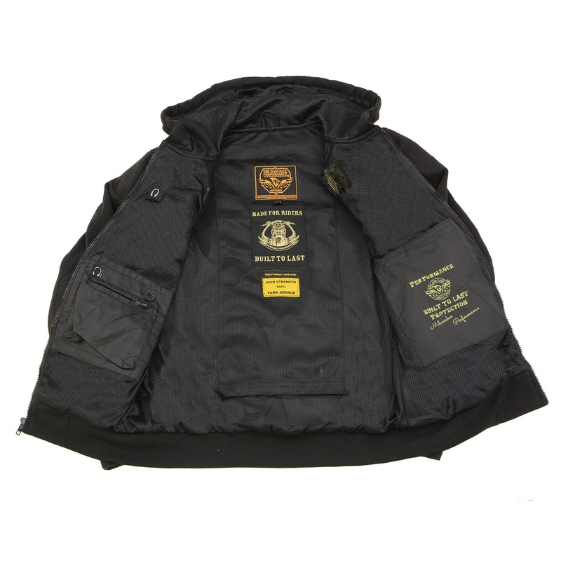 Milwaukee Leather Men's CE Approved Armored Hoodie with Reinforced Fibers Black and Silver Versions Available (Black, Medium)