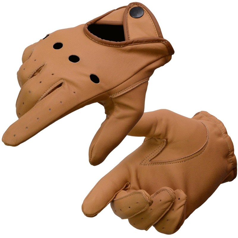 Milwaukee Leather MG7508 Men's Saddle Perforated Full-Finger Motorcycle Riding Gloves with Breathable Open Knuckle - Small