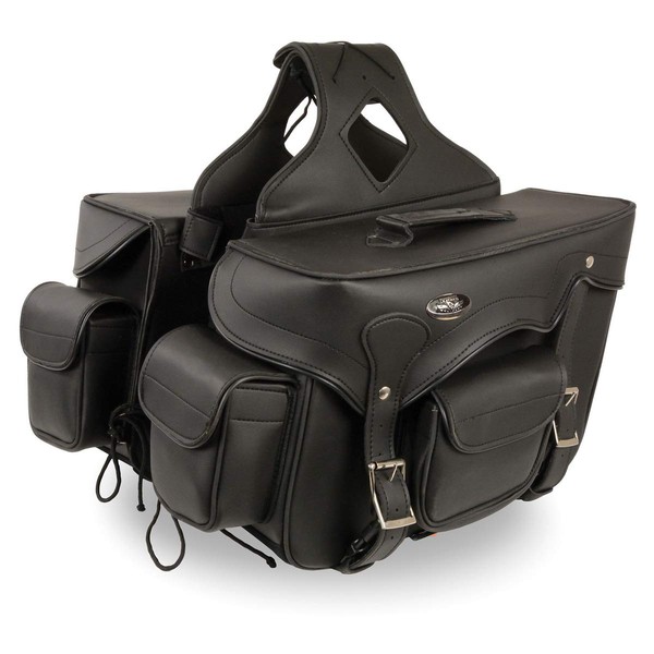Milwaukee Performance SH666ZB Black PVC Double Front Pocket Throw Over Saddle Bag with Reflective Piping - One Size