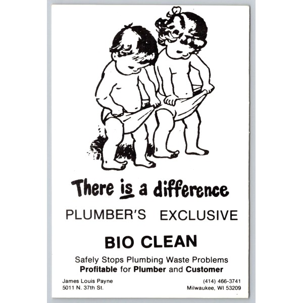 Milwaukee WI Bio-Clean Plumbing Waste Solution Promotional Postcard