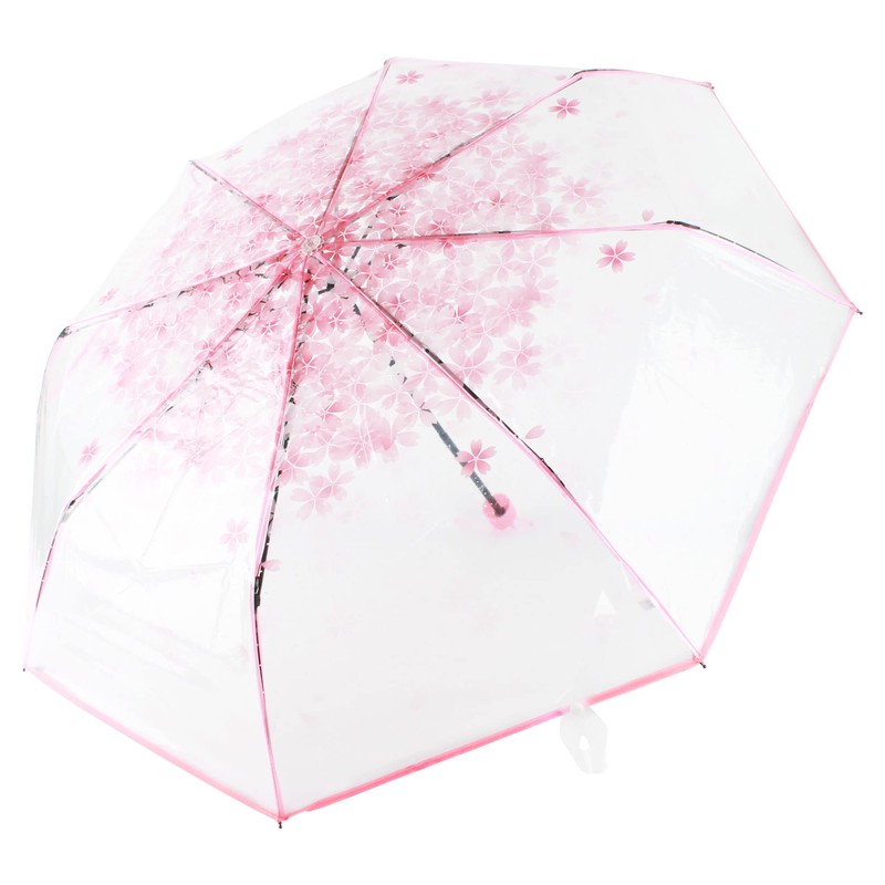 Milya Pocket Umbrella Transparent Ultra Light Manual Umbrella Transparent Cherry Blossom Flower Pattern Foldable Portable Pink
