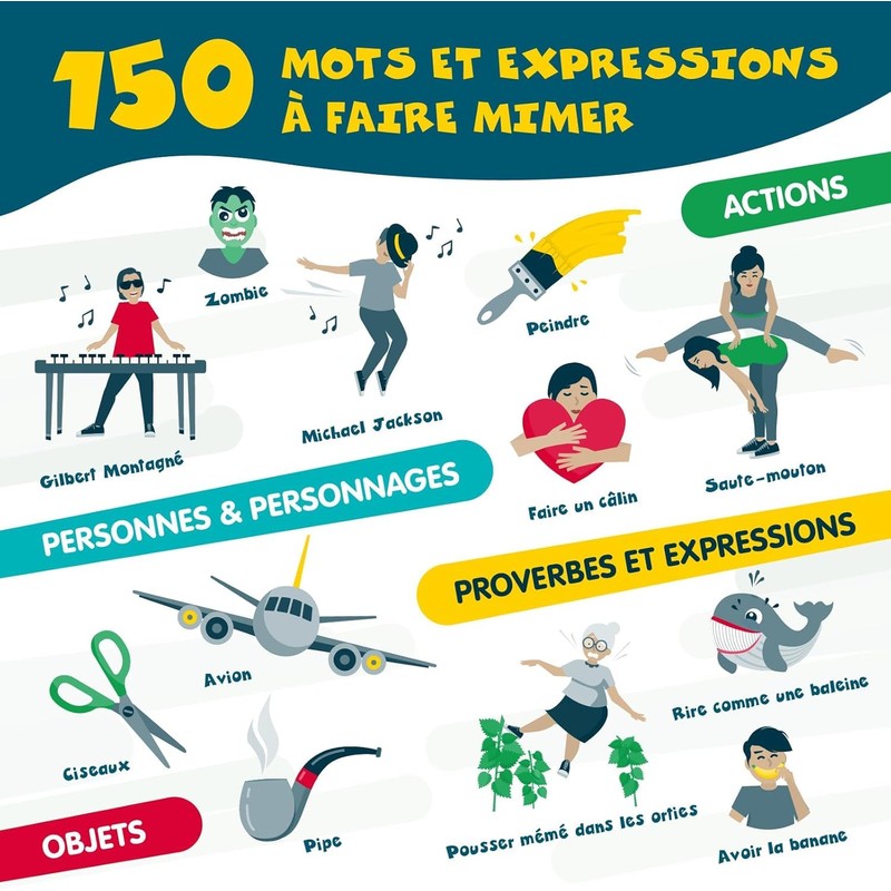 - Easy rules - The Mime Master draws a card and must let the word guess... without saying it yourself or miming! There are only instructions on postures and movements. The first player to guess the action will be the new Mime Master !