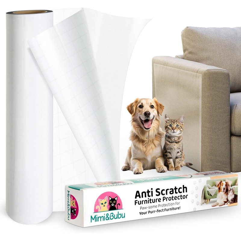 Mimi&Bubu [0.2 mm Extra-Thick BPA-Free] Anti Scratch Furniture Protector, Single-Sided Sticky Couch Protector for Cats and Dogs, Couch Corner Guard from Claws, Cat Scratch Deterrent Tape (160" x 13")