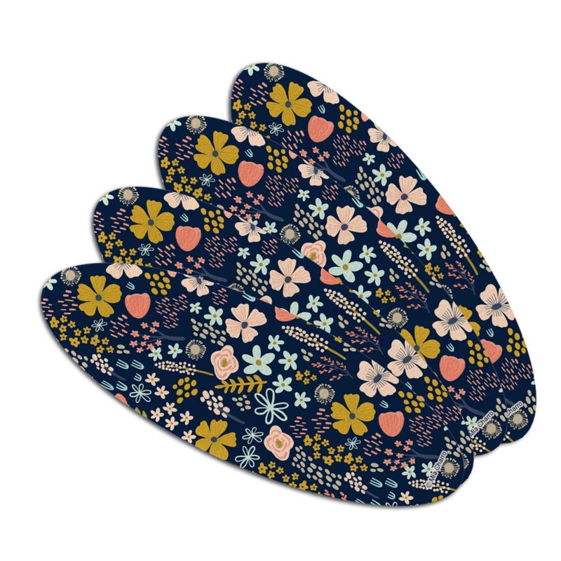 Mimi Flowers Floral Pattern Double-Sided Oval Nail File Emery Board Set 4 Pack