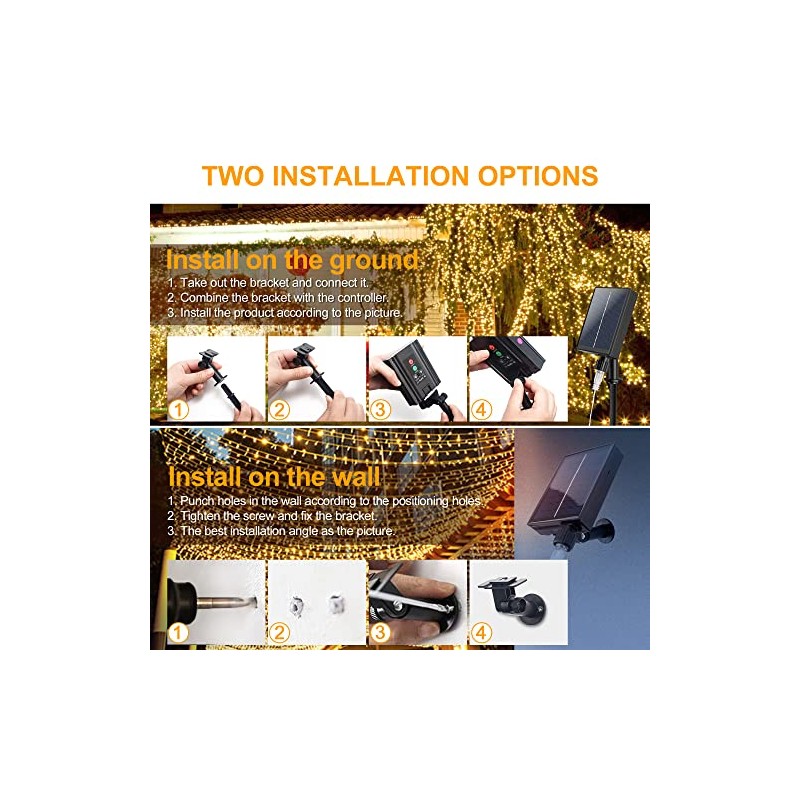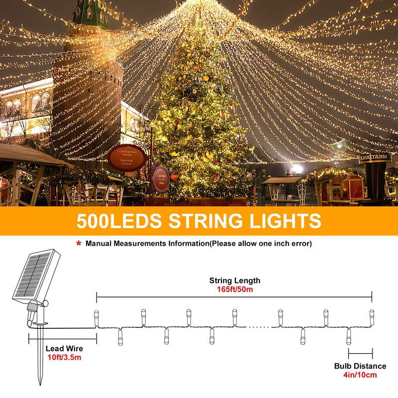 mimigogo Solar String Lights Outdoor,500 LED 165FT Christmas Lights with 8 Modes and Timer, Remote Control for Holiday Patio Garden Party Decor(Warm White)