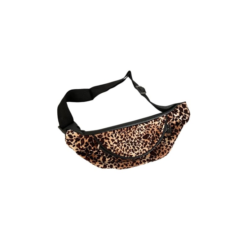 MIMIKRY 80s 90s Leopard Bum Bag Leo Shoulder Bag Waist Bag Belt Bag Party Bag, Light brown/dark brown/black