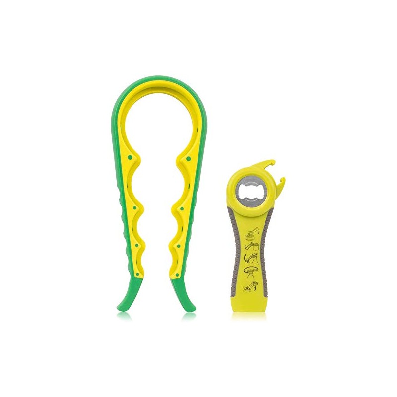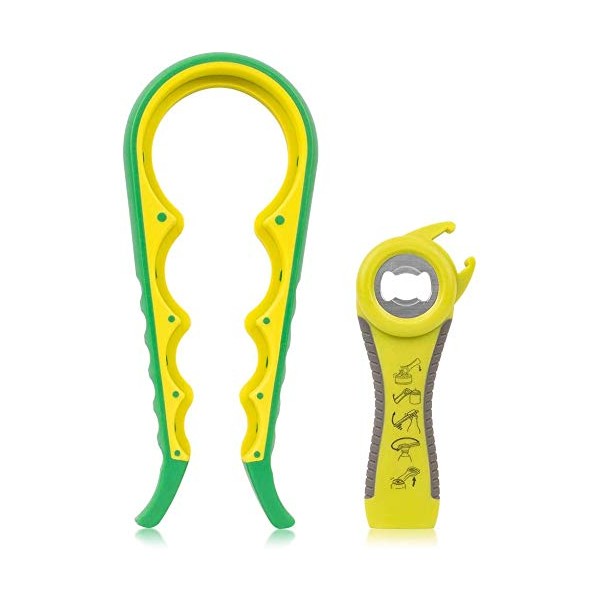 - Package: 2 pack in one set 2 openers: 1 x 5-in-1 bottle opener and 1 x 4-in-1 jar opener.