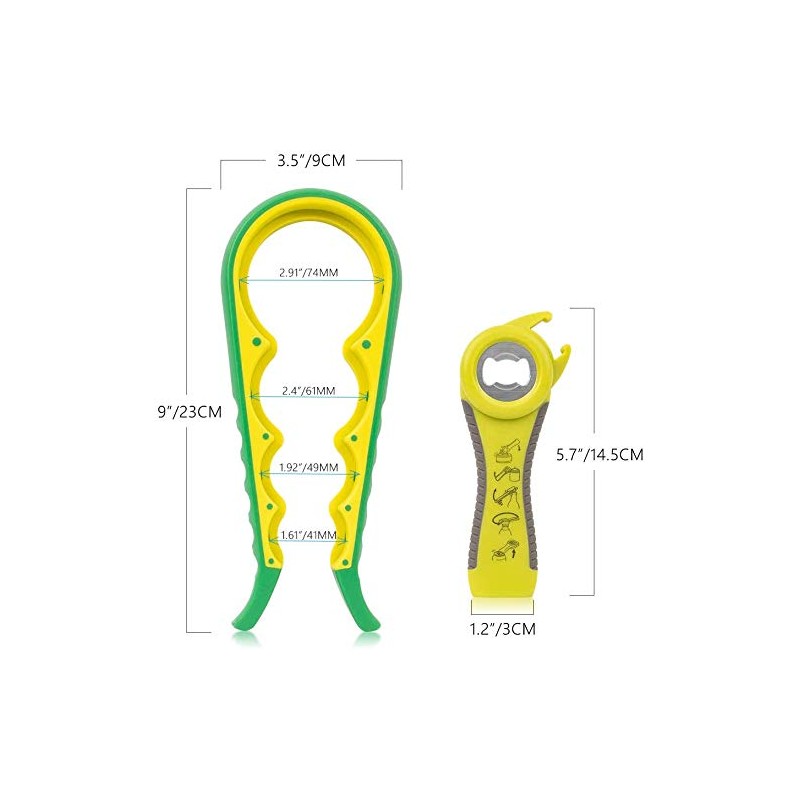 - Package: 2 pack in one set 2 openers: 1 x 5-in-1 bottle opener and 1 x 4-in-1 jar opener.