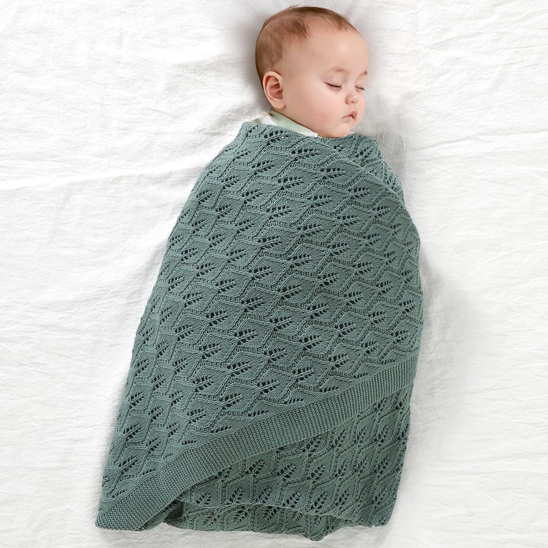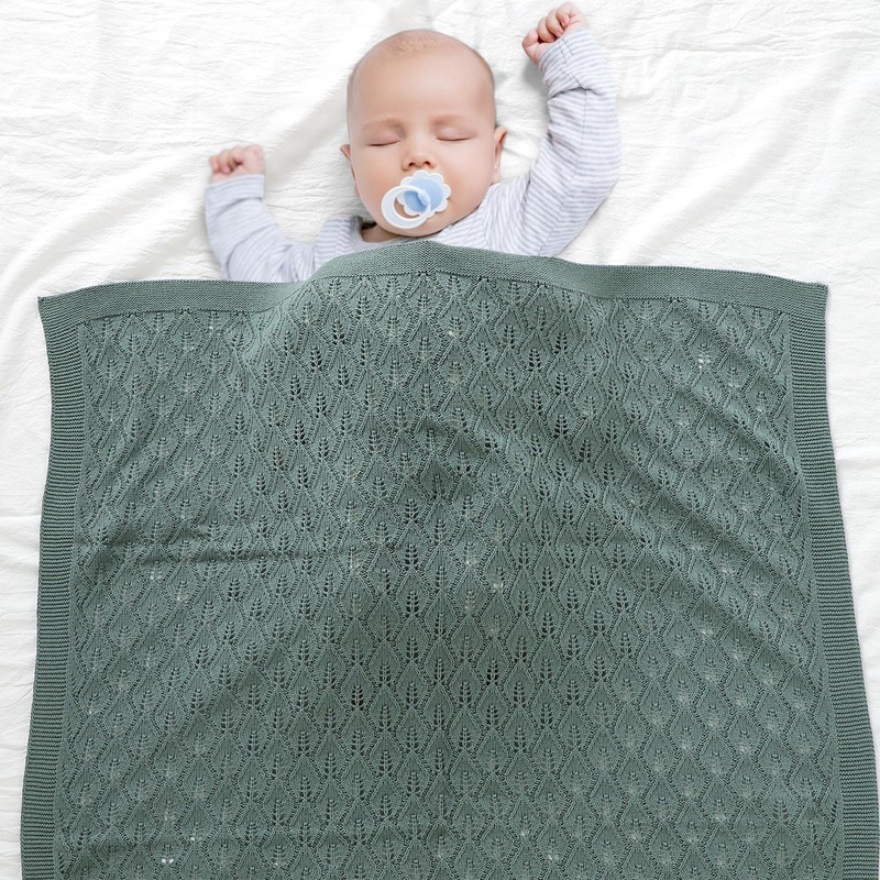 mimixiong 100% Cotton Knitted Cellular Baby Blanket for Boys and Girls (Dark Green)