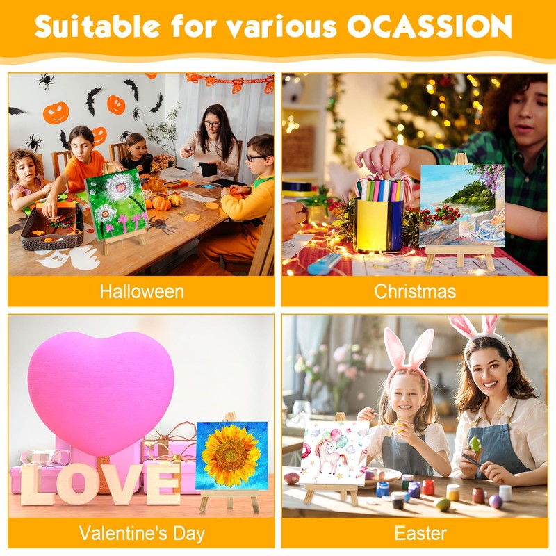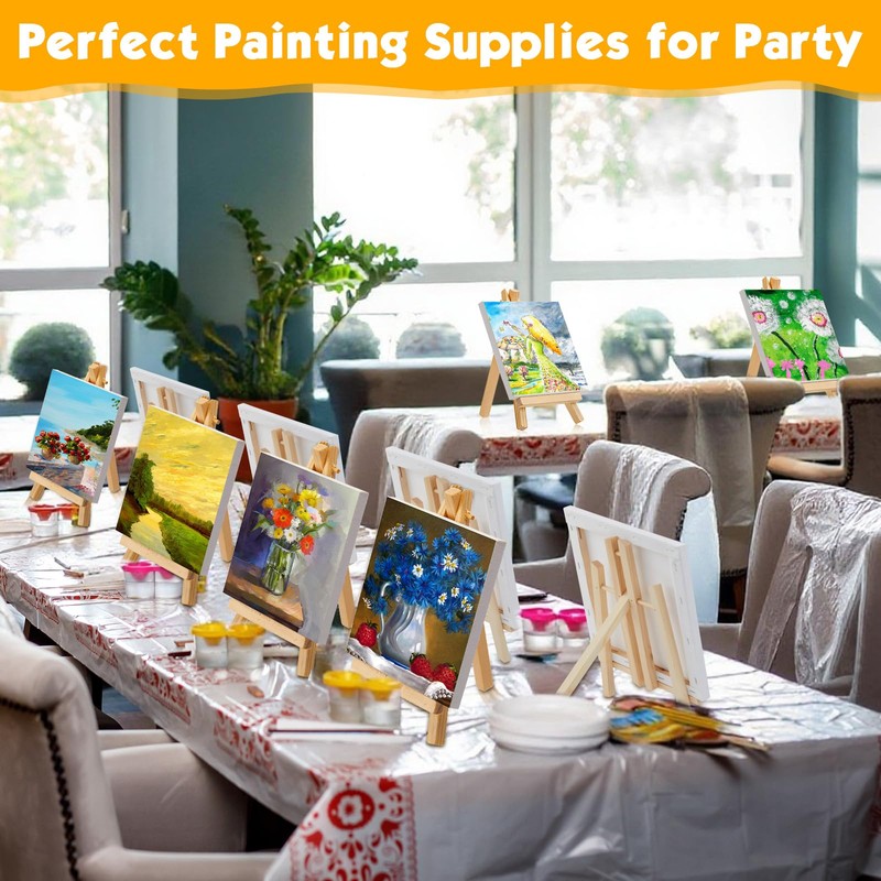 - Versatile Usage: our mini easel and canvas sets can be applied to display small paintings, crafts, birthday party craft, small group projects, Valentines Day project, First day of school, Back to School, miniatures, kids' artwork, photographs, name cards, beautiful pictures and more, suitable for kids' art activities, parties, holidays, weddings, home