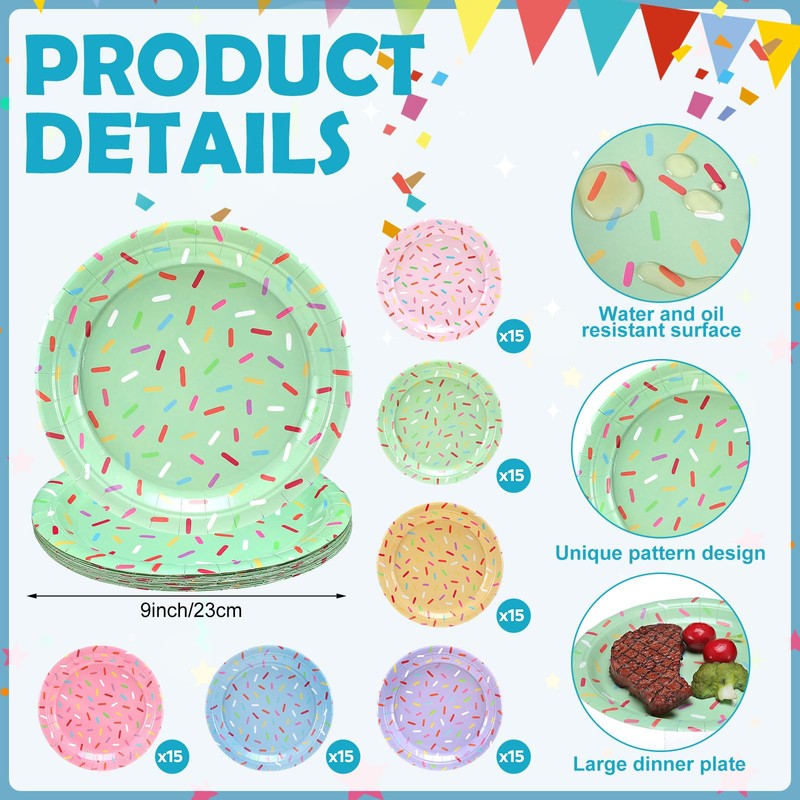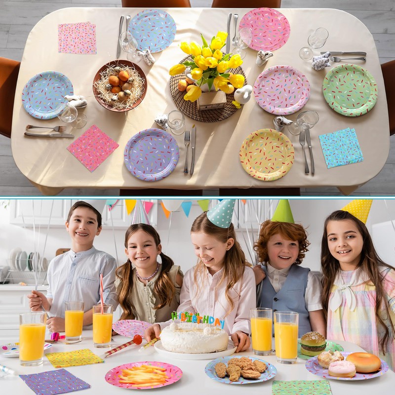 - Donut Themed Party Set: the donut themed party supplies include 24 confetti party plates and 24 cocktail napkins, each designed in 6 delightful colors: blue, pink, purple, rose, yellow and green; This not only provides you with a sufficient quantity but also offers ample choices for your party decorations