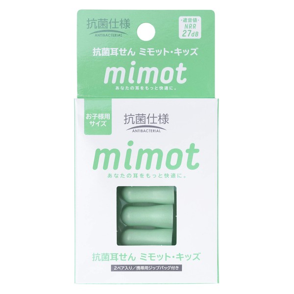 mimot antibacterial ear plugs kids size 2 pairs with portable zip bag