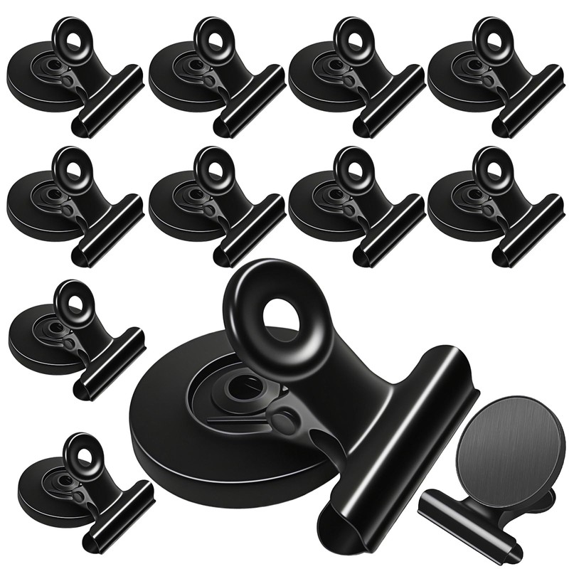 MIN CI 12 Pack Black Magnetic Clips, Strong Fridge Magnets, Magnets for Whiteboard, Refrigerator, Notice Board,Office, Home
