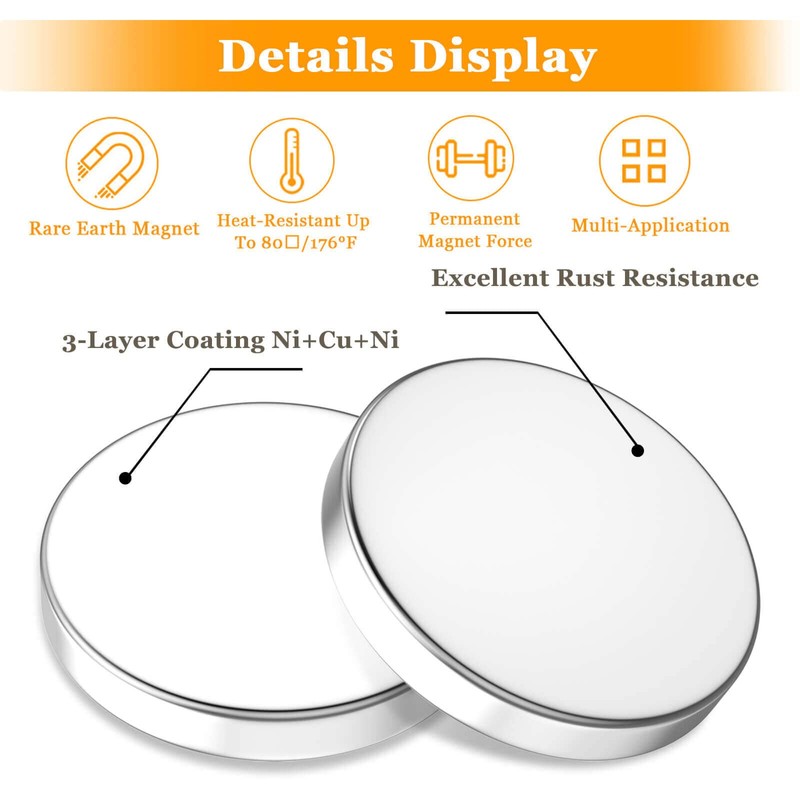 - 【Magnets Performance】Rare earth magnets heavy duty are made of rare earth materials. The round magnets strong coated with three-layer Ni+Cu+Ni plating process. Make the magnets neodymium more durable.