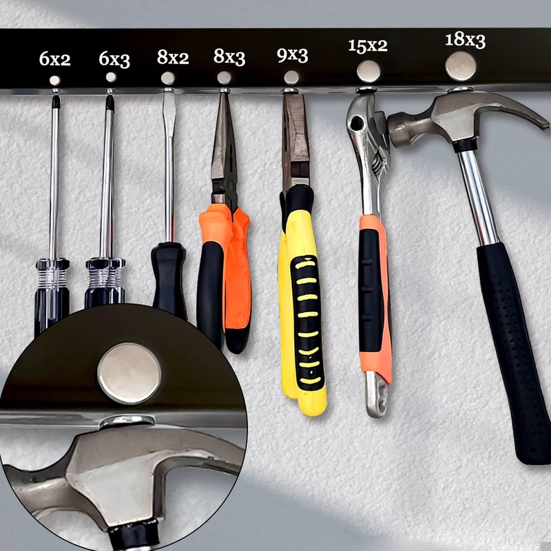 - 【Multipurpose Magnets】Neodymium magnets are used to hang and fix various metal tools, and organize various metal objects. Great for crafts, cruise ships, workshop, garages, storehouse, and more.