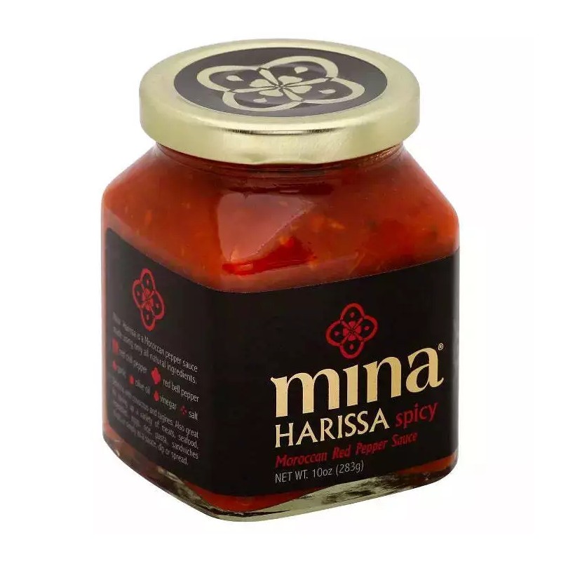 Gluten Free, Non-GMO, Kosher, Mina Harissa is a Moroccan pepper sauce made using only all-natural ingredients: red bell pepper, red chili pepper, garlic, olive oil, vinegar, and salt. Delicious with couscous and tagines, it is also great for spicing up a variety of meats, seafood, vegetables, eggs, rice, pasta, sandwiches, soups, or simply as a sauce, dip, or spread.
