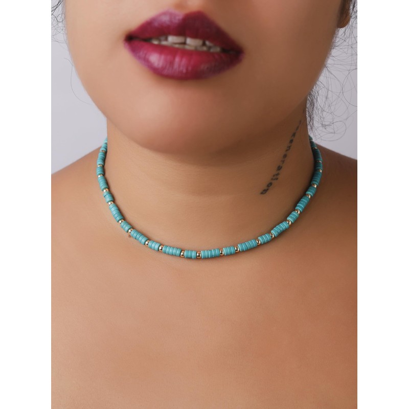 MINACHI Bohemian Created-Turquoise Beaded Necklace for Women, Minimalist Style Jewelry