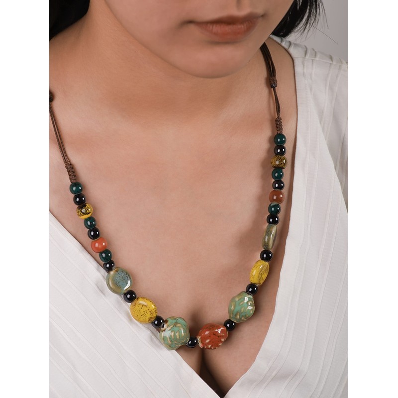 MINACHI Boho Hippie Colorful Ceramic Beads Strand Necklace Bohemian Jewelry Gift (Color 2)