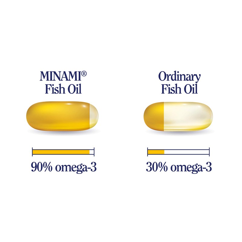 - High Concentration of Omega 3 Fish Oil - With 480mg of DHA and 104mg of EPA. High stregnth Minami products mean that you absorb up to 95% omega 3 in each Minami capsule, which leads to a higher proportion of Omega-3 in fewer doses