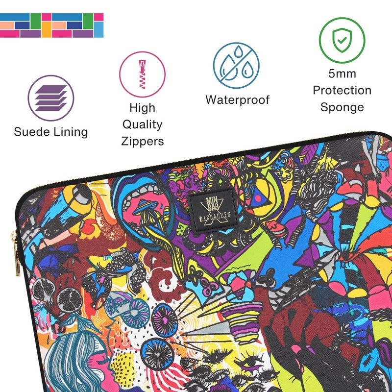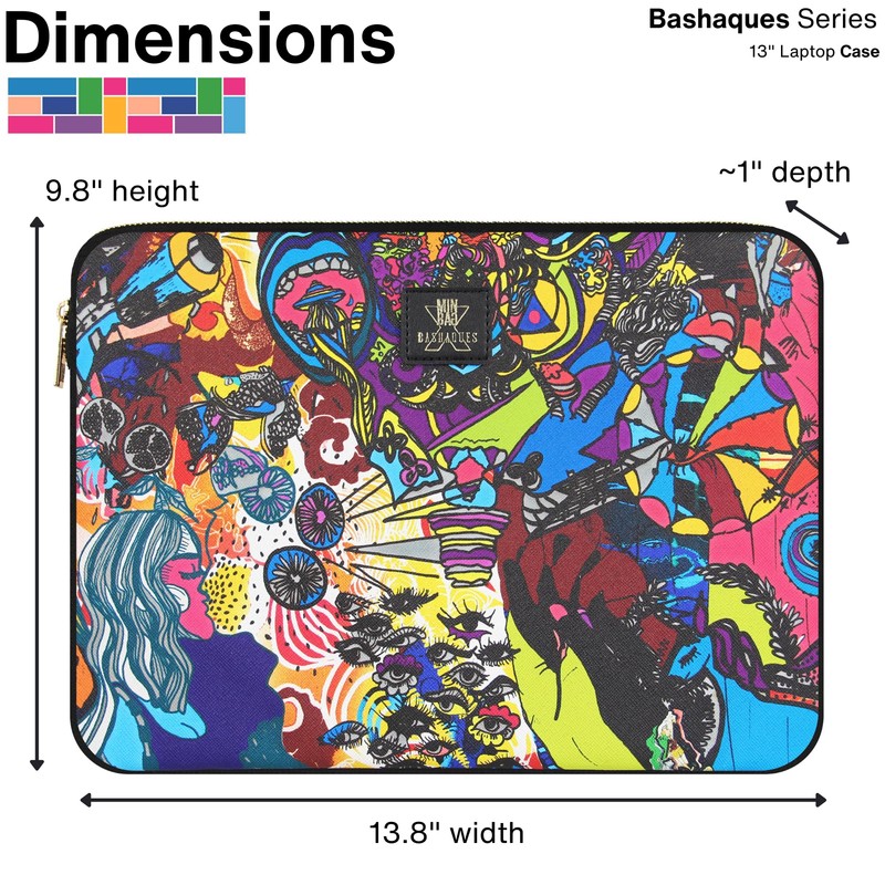 - High End Fashion - The Minibag x Bashaques Laptop Case series is a one-of-a-kind collaboration crafted under the visionary artist, Başak Cankeş. The creative style of this laptop case sets it apart from the rest, reflecting the quality craft of Minibag and the innovative design that Bashaques is celebrated for. It’s not just a laptop case; it’s a wearable art piece.