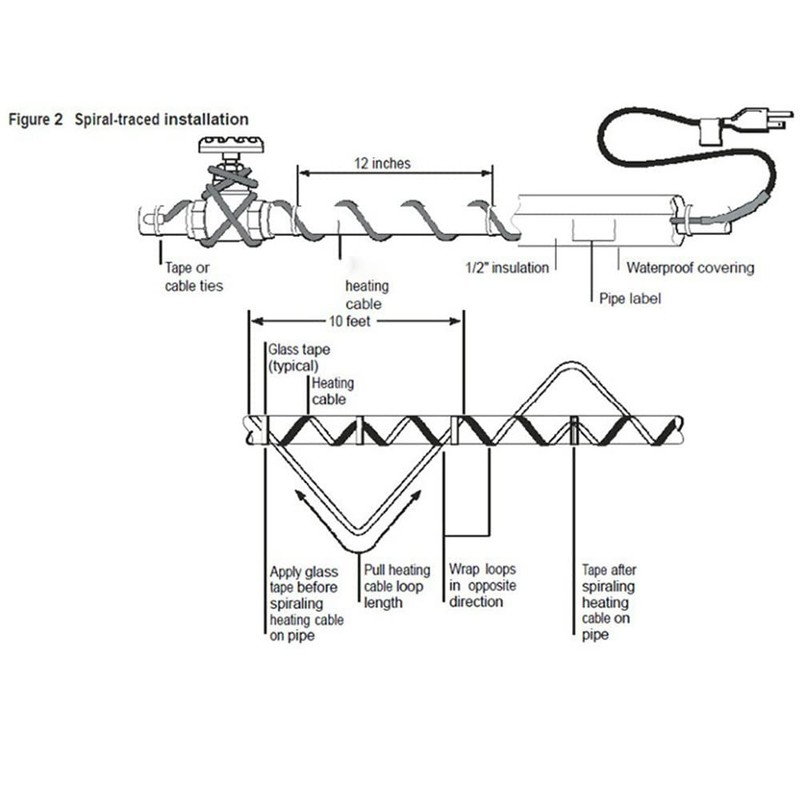 • The heating cable can provides reliable freeze protection at temperatures of -40 °C. You can Instal the heating cable at any time of year, it is not required to excavate the pipe.