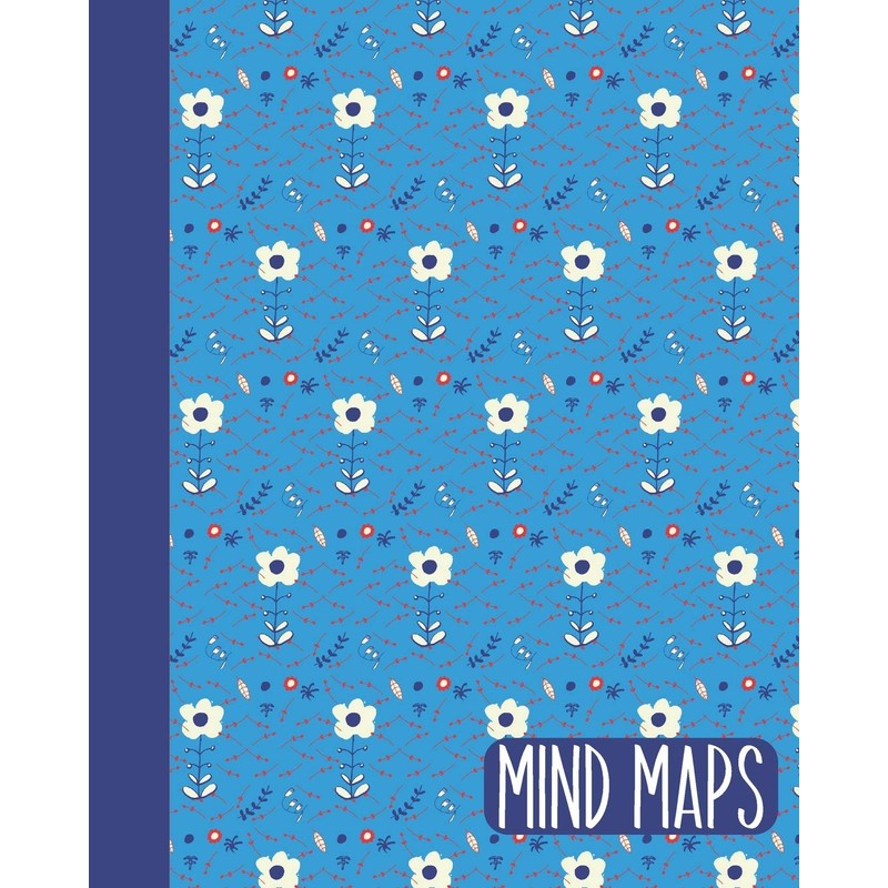 Mind Maps: Notebook for Mind Mapping, Brainstorming, and Visual Thinking at Work, School, and Home | Scandinavian Nordic Floral Pattern Soft Cover Design in Blue