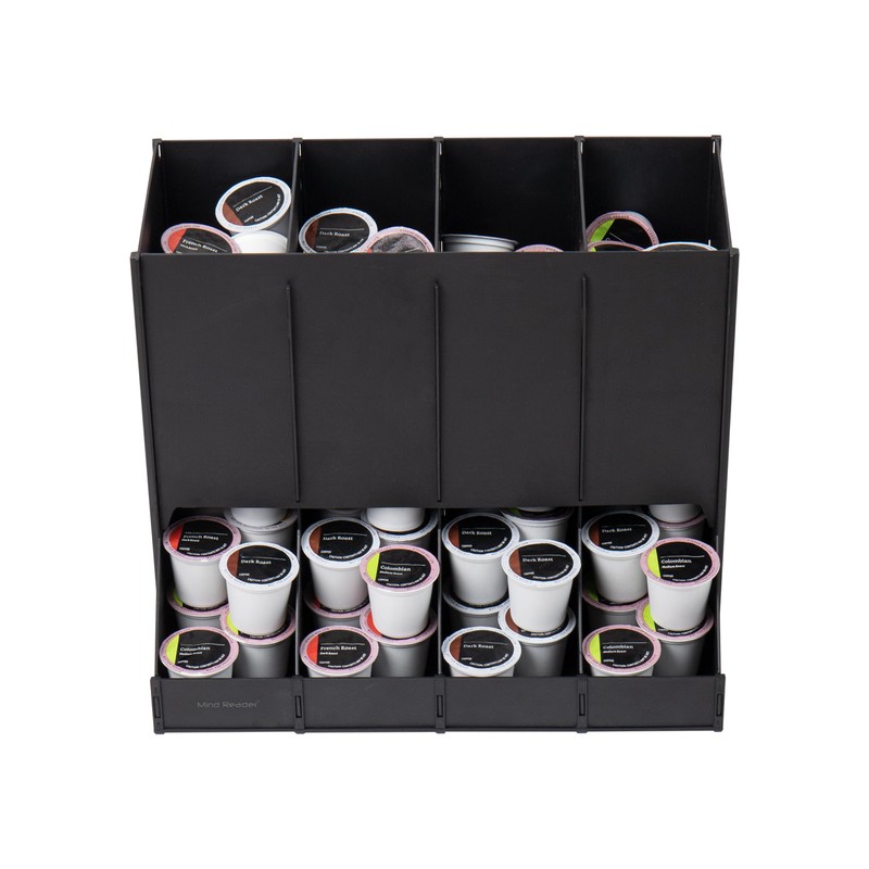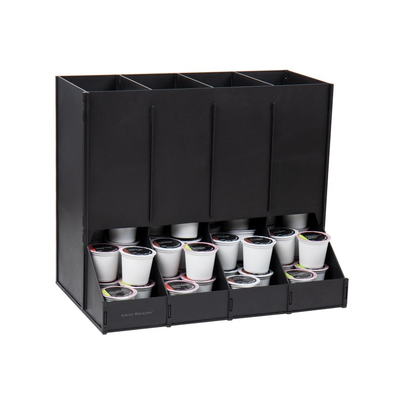 Mind Reader 4-Compartment Single Serve Coffee Pod Dispenser, 120 Pod Capacity, Breakroom, 14.5" L x 9" W x 12.25" H, Black