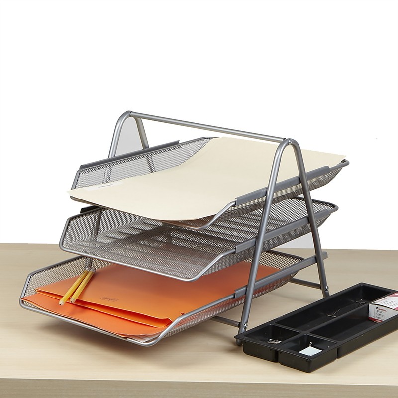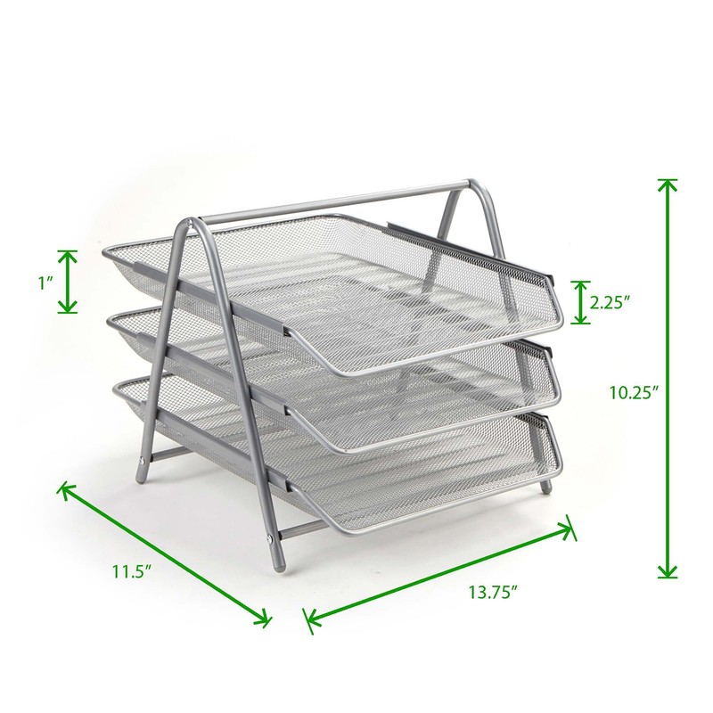 - HEAVY DUTY LIGHTWEIGHT METAL MESH: This durable and stylish 3 tier metal letter, paper or file organizer makes it easy to organize and store your supplies including folders, paper, pictures, documents - easy carry handle at the top - coordinates with any work or home office décor.