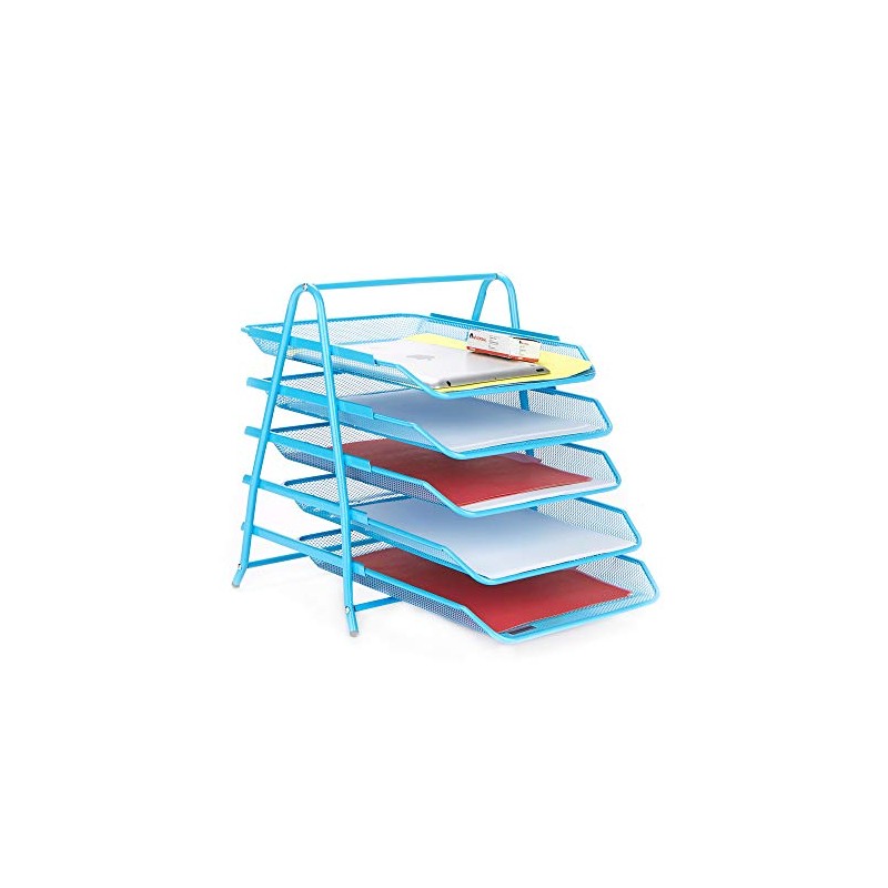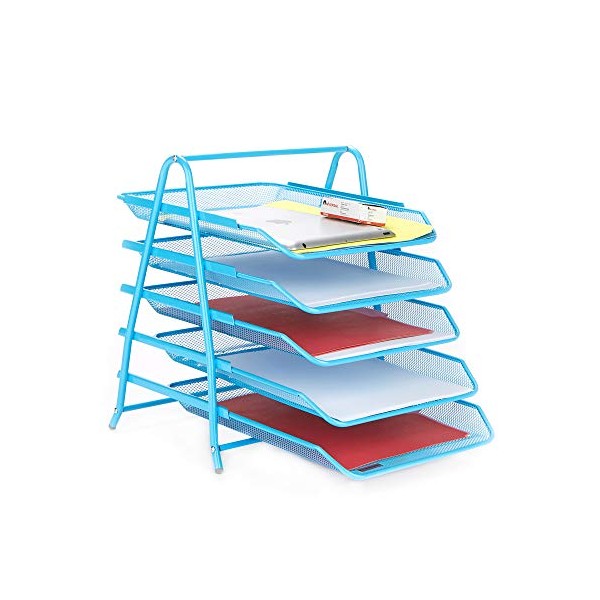 Mind Reader Desk Organizer with 5 Sliding Trays for Letters, Documents, Mail, Files, Paper, Blue